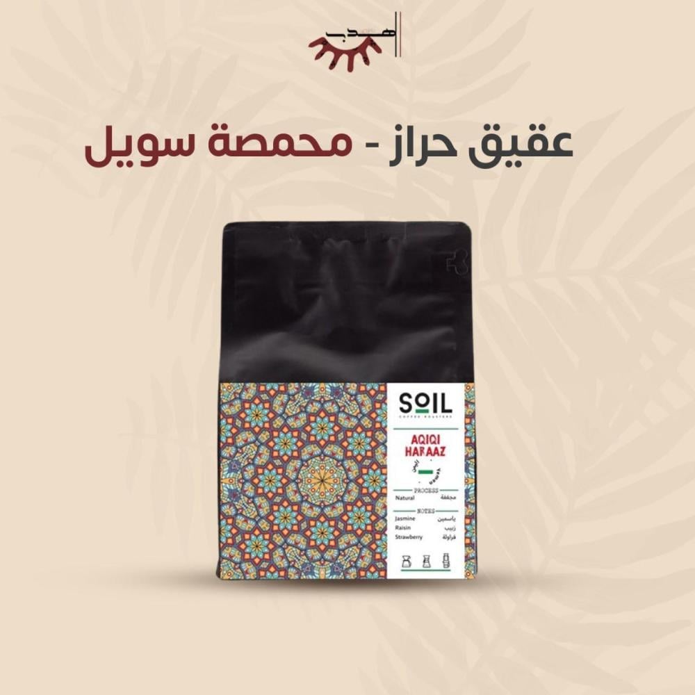 عقيق حراز من على المدرّجات الخضراء الجميلة و التي يصل ارتفاعها الى 2100 متر فوق سطح البحر و الغنيّة بالمحاصيل من قرية العبرات تحديداً شرق حراز حيث يعمل المزارع عماد قائد الذي ورث مهنة زراعة البن من والده منذ وقت مبكر و يمتلك ما يزيد عن 1300 شجرة بن من سلالات متنوعة